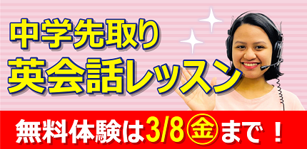 「中学英語の授業を先取りできる英会話レッスン」を無料で受けられるチケットをお届けしているよ。今すぐ受講方法をチェックしよう!