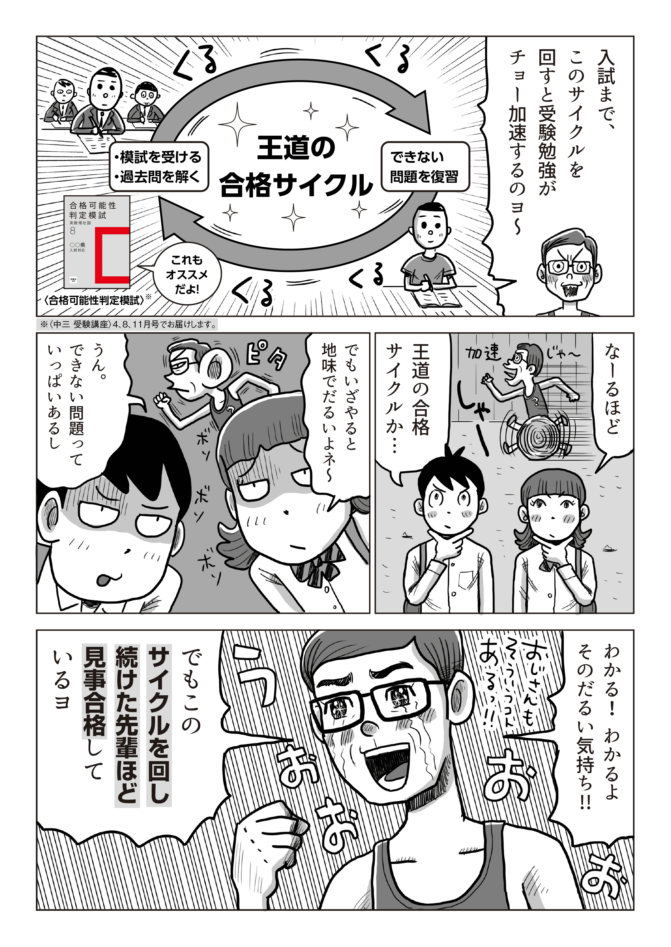 2人がやる気になってくれて嬉しいヨ~! もう一歩進むキミは、夏休みの間に自分の県の入試問題を見ておこう。 「47都道府県別 高校入試セミナー」では最新の入試問題を、教科別に時間・得点・大問構成・配点まで分析して教えてくれるヨ。録画だと自分の見たいタイミングで見られるから便利! 早めに見てネ。