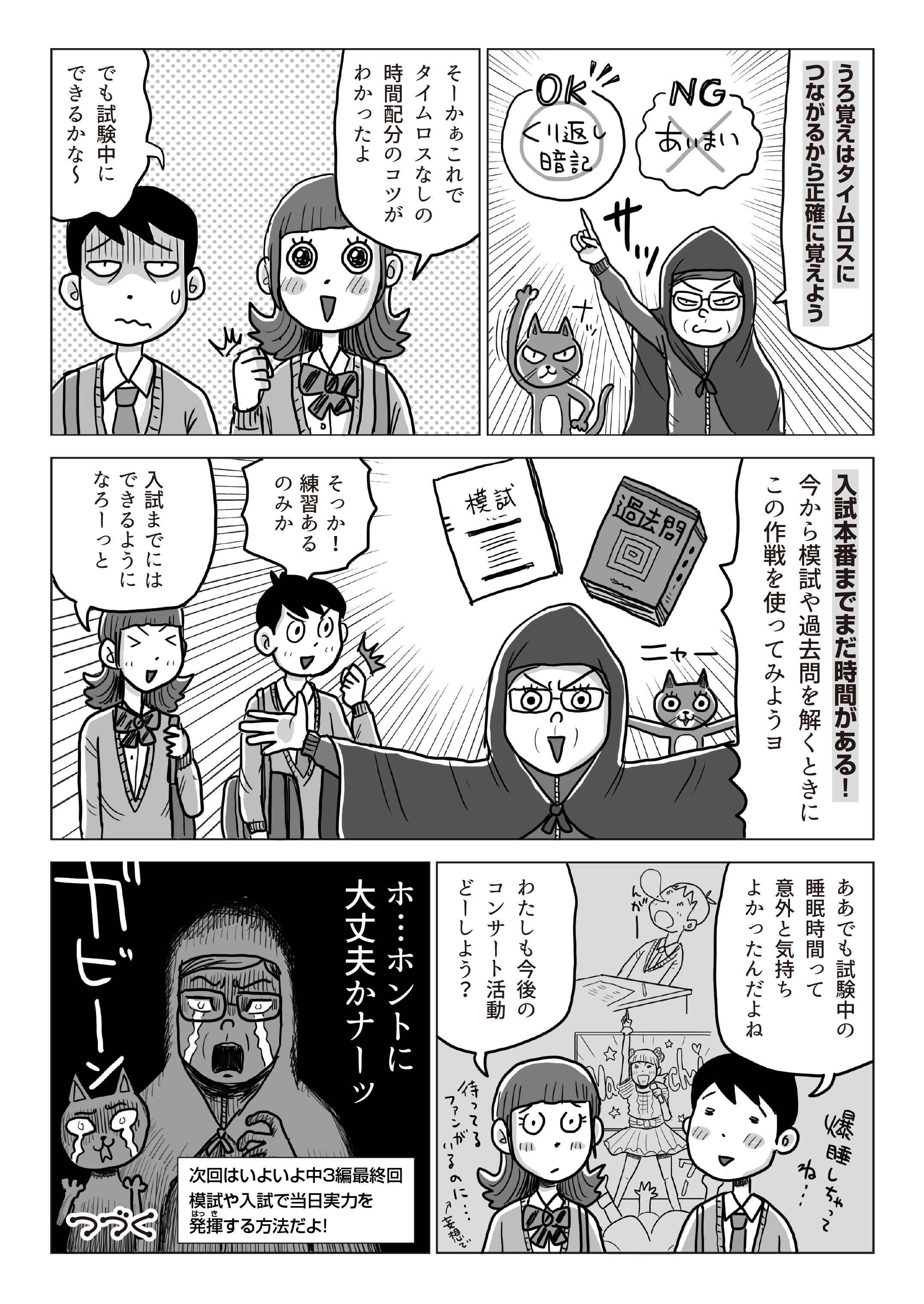 ゼミの先輩たちから超貴重な情報を教えてもらったヨ~!! なんと合格した先輩の中学校時の成績や学力検査の得点だヨ。中学3年間の学校の成績はどのくらいで、公立高校入試の当日点は何点ぐらいだったのかが、表から一目でわかるのヨ! 過去問を解くときに参考にするのがオススメッ。合格のための目安がわかってやる気が出るネ!
